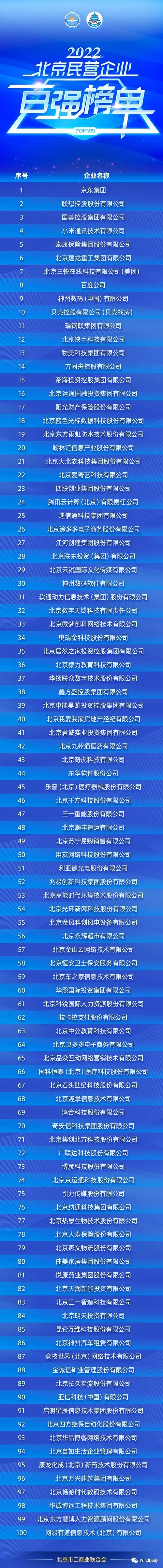 WindDaily獲悉,北京市工商聯(lián)近期公布2022年北京民營(yíng)企業(yè)百?gòu)?qiáng)榜單,3家風(fēng)電企業(yè)上榜。分別是:三一重能股份有限公司,第47位;北京金風(fēng)科創(chuàng)風(fēng)電設(shè)備有限公司,第55位;北京天潤(rùn)新能投資有限公司,第82位。具體榜單如下: