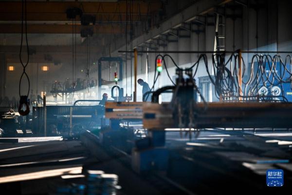 2月2日,在內(nèi)蒙古通遼市科爾沁區(qū)龍馬新能源裝備制造產(chǎn)業(yè)園,工人在生產(chǎn)線上工作。