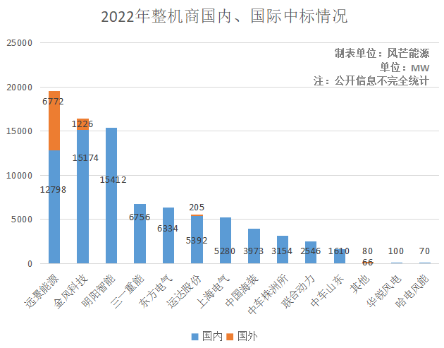 以三一重能為例,風(fēng)芒能源根據(jù)公開信息不完全統(tǒng)計,2022年,三一重能共中標(biāo)6.8GW,中標(biāo)容量緊隨遠景能源、金風(fēng)科技、明陽智能之后,位列第四。若要進一步擴大市占率,躋身第一梯隊,進軍海上風(fēng)電是必由之路。