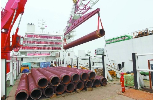 施工船上的工作人員向記者介紹說,“按照現(xiàn)在的進(jìn)度,我們每天可以鋪設(shè)200米左右的海底管道,預(yù)計(jì)在9月底可以鋪設(shè)完成”。