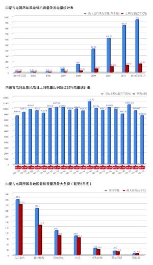 2009年,電網(wǎng)單日上網(wǎng)電量最高比例突破15%;2010年,電網(wǎng)單日上網(wǎng)電量首次突破20%大關(guān);2011年,風電日上網(wǎng)電量創(chuàng)24%的歷史新高。隨著上半年采暖期的結(jié)束,內(nèi)蒙古電力公司通過優(yōu)化電網(wǎng)運行方式,采取火電機組深度調(diào)峰等措施,實現(xiàn)了風電的大比例接入。