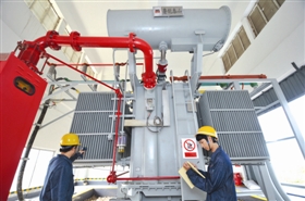升壓站是發(fā)電接入系統(tǒng)核心設(shè)備,圖為技術(shù)人員密切關(guān)注升壓站工作情況。