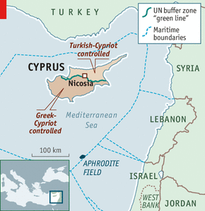 《經(jīng)濟學(xué)人》3月23日一篇文章探討了塞浦路斯天然氣資源問題。文章認(rèn)為如果塞浦路斯位于地中海深水區(qū)的阿芙洛狄忒氣田(Aphrodite gasfield)得到開發(fā)的話,塞浦路斯在紓困方案談判時可能會獲得更有利的條件。