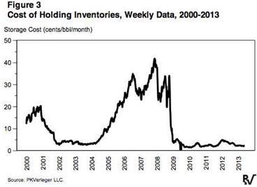 QE可以解釋過多的庫存累積。下圖可以看到2000-2013年持有庫存的金融成本。