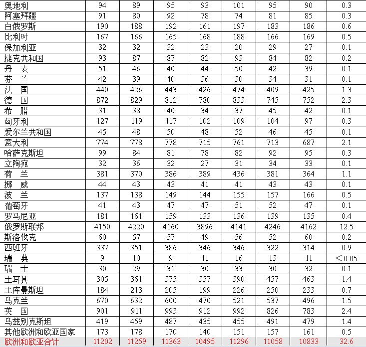本資料來源于BP公司《Statistical Review of World Energy 2013》。