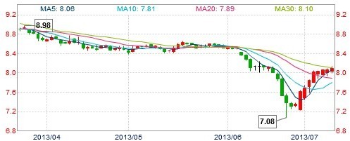 中石油截至7月9日股價(jià)日K圖