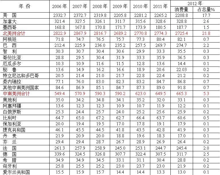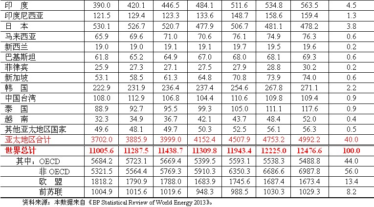 (1)2012年一次能源消費最多的國家依次是中國和美國,兩國占世界總量的39.6%。其次是俄羅斯、印度和日本,這3個國家只占世界總量的13.9%。