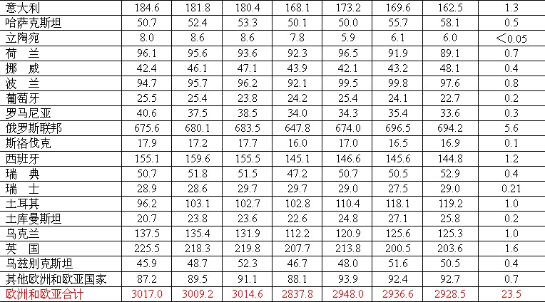 (3)北美洲、歐洲和歐亞等這些經(jīng)濟發(fā)達地區(qū)的一次能源消費在減少,而中東、非洲和亞太地區(qū)的一次能源消費卻在增加。