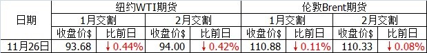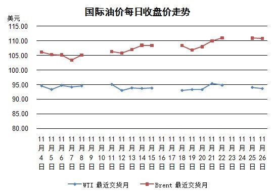 另外,美國(guó)民間大型調(diào)查公司世界大企業(yè)聯(lián)合會(huì)公布的11月美國(guó)消費(fèi)者信心指數(shù)為70.4,低于前一月數(shù)據(jù),而且低于路透社調(diào)查的72.9,這也壓迫油價(jià)下行。伊朗核問題取得階段性成果,地緣政治風(fēng)險(xiǎn)減弱也利空油價(jià)。