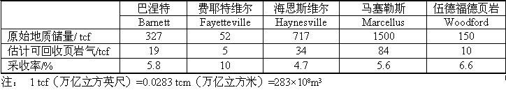 常規(guī)天然氣采收率一般為60%,原油一次采油為5%~15%,三次采油可達(dá)60%。非常規(guī)儲(chǔ)層中的致密氣、致密油和頁(yè)巖氣的采收率都很低的。表中未美國(guó)油氣雜志報(bào)道的數(shù)據(jù),可以看出頁(yè)巖氣采收率在4.7%~10%之間,是很低的。