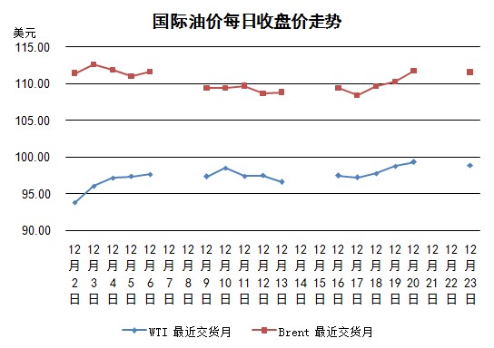 由于圣誕節(jié)來(lái)臨,在連日上漲之后部分交易者選擇落袋為安,因此當(dāng)日紐約WTI、倫敦布倫特價(jià)格都有小幅下降。但是目前導(dǎo)致油價(jià)上漲的不安因素仍未消除:法國(guó)道達(dá)爾三座煉廠工人持續(xù)罷工、利比亞石油出口減少約100萬(wàn)桶/日(當(dāng)?shù)赜形溲b組織在尋求更大的自治權(quán))、南蘇丹動(dòng)亂導(dǎo)致其24.5萬(wàn)桶/日的石油產(chǎn)量受到威脅等(中石油已經(jīng)將工人從油田撤出)。