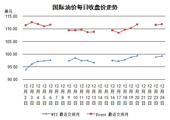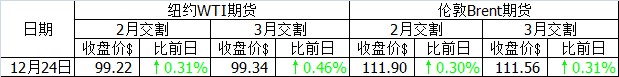 紐約WTI價(jià)格和倫敦布倫特價(jià)格當(dāng)日結(jié)束前一日的小幅下跌繼續(xù)扭頭向上。根據(jù)路透社的調(diào)查預(yù)測(cè),截至20日的美國(guó)原油庫(kù)存比前一周減少230萬(wàn)桶,連續(xù)4周出現(xiàn)下降。餾分油減少40萬(wàn)桶,汽油增加130萬(wàn)桶。25日因圣誕節(jié)原因紐約商品交易所將休市。美國(guó)能源信息署石油庫(kù)存周報(bào)也將推遲至27日公布。當(dāng)日早上公布的11月美國(guó)耐久財(cái)數(shù)據(jù)和同月的新建獨(dú)棟住宅銷售量都好于市場(chǎng)預(yù)期。