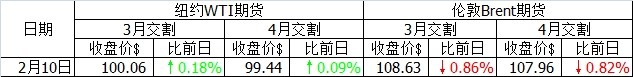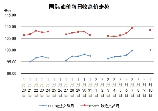 當(dāng)日外匯市場美元走弱,導(dǎo)致以美元定價的油價給人以較低的感覺,拉升油價上漲。路透社調(diào)查預(yù)計,截至上周的原油庫存增加300萬桶,汽油庫存基本維持不變,餾分油庫存減少230萬桶。但當(dāng)日缺乏供求和美國金融政策的新消息,價格波動缺乏方向感。紐約WTI最終小幅收漲,一個半月以來再次登上100美元的關(guān)口。倫敦布倫特油價因為(嚴(yán)寒天氣即將結(jié)束導(dǎo)致的)民用燃料油價格下跌以及利比亞和北海供給的增加,最終收跌。