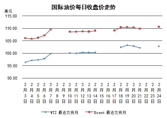 市場預計WTI原油交易地點俄克拉荷馬州庫欣的庫存將會減少,買單增多。另外,德國IFO獨立經(jīng)濟研究所當日公布的2月德國經(jīng)濟指數(shù)連續(xù)4個月增加,美國股市上漲,原油價格連帶上漲。布倫特油價則繼續(xù)受到利比亞和南蘇丹局勢的影響保持在高位。