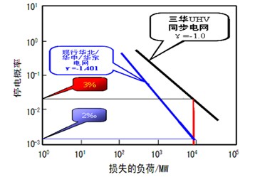 (4)交流特高壓及三華交流特高壓電網(wǎng)引發(fā)連鎖性大停電事故的概率將十余倍地增大。