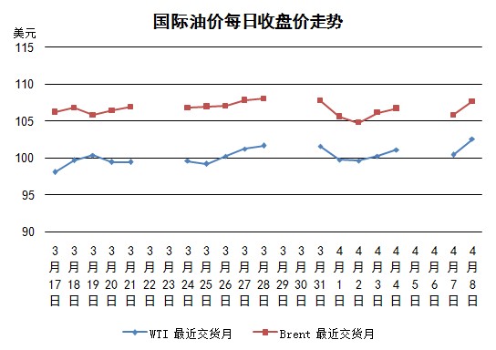 8日國(guó)際油價(jià)大漲,WTI5月期貨價(jià)格約為一個(gè)月以來(lái)最高值。烏克蘭東部頓涅茨克州、哈爾科夫州和盧甘斯克州數(shù)千名親俄民眾6日舉行抗議集會(huì),頓涅茨克和哈爾科夫的一些集會(huì)者占領(lǐng)了州政府大樓,升起俄羅斯國(guó)旗,宣稱“獨(dú)立”成立“共和國(guó)”。俄羅斯外長(zhǎng)拉夫羅夫7日警告烏克蘭當(dāng)局不要在烏東部和南部地區(qū)對(duì)親俄示威者使用武力。拉夫羅夫表示,在烏克蘭東部地區(qū)動(dòng)用武力可能會(huì)引發(fā)“內(nèi)戰(zhàn)”。西方擔(dān)心俄羅斯可能會(huì)對(duì)烏克蘭進(jìn)行新的武力干涉。