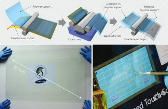 由于石墨烯柔韌、透明且可以導(dǎo)電的特性,相比傳統(tǒng)玻璃,它更適合作為屏幕面板。包括美國德克薩斯大學(xué)、韓國成均館大學(xué)均在早期進(jìn)入此領(lǐng)域進(jìn)行研究,并取得了一定的成功;而科技公司方面,三星在2011年已經(jīng)研發(fā)出40英寸的石墨烯觸摸屏面板、索尼則在2012年進(jìn)一步將其柔性化。