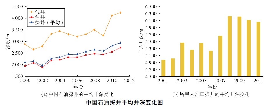 中國(guó)石油天然氣股份有限公司(以下簡(jiǎn)稱(chēng)中國(guó)石油)的探井平均井深由2000年的2119m增長(zhǎng)到2011年的2946m,其中,塔里木油田勘探井深已連續(xù)4年超過(guò)6000m,且突破了8000m深度關(guān)口(克深7井井深8023m);東部盆地勘探井深突破6000m(牛東1井井深6027m)。