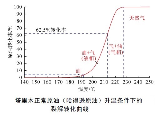 筆者近期通過(guò)大量原油裂解金管模擬實(shí)驗(yàn)發(fā)現(xiàn),原油的熱穩(wěn)定性很大程度上受控于原油的組成;塔里木原油裂解實(shí)驗(yàn)和地質(zhì)推演結(jié)果證實(shí),受控于原油性質(zhì)和該盆地特殊的熱史條件,塔里木正常原油完全裂解的溫度門(mén)限可延伸至近230℃,深度可達(dá)6000m以上。