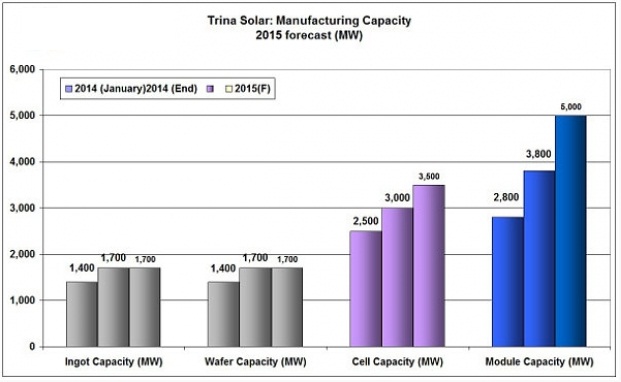 然而,鑒于大多數(shù)產(chǎn)能增加集中在組件裝配,實(shí)現(xiàn)最高產(chǎn)量增加的最低資本支出應(yīng)該導(dǎo)致天合光能明年與2014年支出金額相似。