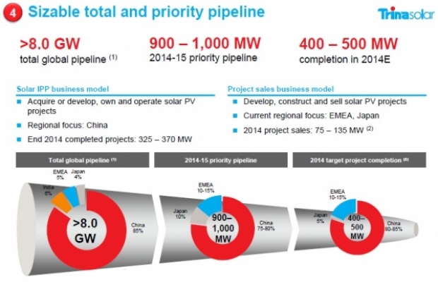 該公司指出,總計(jì)7GW在中國(guó),中國(guó)各地框架協(xié)議超過6GW,2014和2015年優(yōu)先項(xiàng)目?jī)?chǔ)備800MW。
