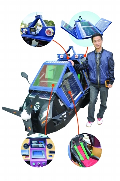 “神車”是用純鋁合金打造,采用的是風力和太陽能發(fā)電。車內(nèi)艙全部是仿造飛機內(nèi)部構(gòu)造。