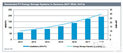 IHS預(yù)計,盡管慷慨的光伏補貼費率令自耗型部門吸引力不大,但2018年日本有望以200兆瓦之多的住宅光伏儲能規(guī)模位列全球第一。為了緩解國家電力短缺現(xiàn)象,日本已推出補貼機制推動鋰離子電池運用于住宅與商業(yè)建筑物之中。由于電力頻繁中斷及高峰與非高峰時期電價存有顯著差異,人們對配有儲能系統(tǒng)的光伏設(shè)施興趣漸濃。雖然配有儲能系統(tǒng)的光伏設(shè)施能夠提供備用電力,但這個因素在推動全球市場發(fā)展的道路上只發(fā)揮很小的作用。