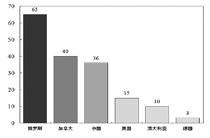 部分國(guó)家煤層氣資源對(duì)比圖(單位:萬(wàn)億立方米)