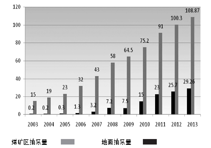 政策的持續(xù)加力,在一定程度上推動(dòng)了我國(guó)煤層氣產(chǎn)業(yè)的發(fā)展,其開(kāi)發(fā)利用力度不斷加大。2001年到2013年,我國(guó)煤層氣抽采量由9.8億立方米增至約138億立方米。