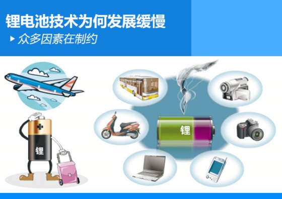 1991年Sony成功開(kāi)發(fā)鋰離子電池。它的商用化,使人們的移動(dòng)電話、筆記本、計(jì)算器等攜帶型電子設(shè)備的重量和體積大大減小。但經(jīng)過(guò)了近二十年的發(fā)展,不管是智能手機(jī)、平板電腦,還是如今異?;鸨奶厮估妱?dòng)車(chē),所有電子設(shè)備使用的鋰電池技術(shù),與索尼公司當(dāng)年開(kāi)發(fā)的鋰離子電池在技術(shù)使用上并無(wú)本質(zhì)差別。鋰電池技術(shù)似乎走進(jìn)了一個(gè)死胡同,從電子行業(yè)的推動(dòng)者一下子成為了行業(yè)的制約者。