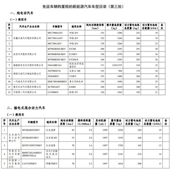 第三批目錄仍包含了純電動汽車和插電式混合動力汽車兩種類型產(chǎn)品,其中純電動車包括了剛剛上市的北汽EV200,還有擁有不同續(xù)航能力的江淮和悅iEV等多款車型。而在插電式混合動力車型中,即將上市的華晨寶馬530Le是唯一一款合資品牌的產(chǎn)品,此外像比亞迪秦、比亞迪唐也都出現(xiàn)在第三批目錄當中。