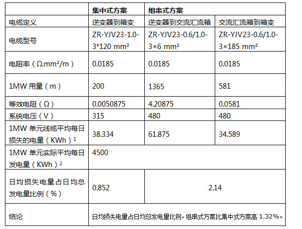 注1:按照該電站實際平均每日發(fā)電量曲線,獲取交流側(cè)電流曲線,結(jié)合線纜參數(shù),計算出1MW單元線纜平均每日損失的電量。
