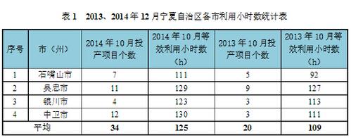 2014年12月,寧夏自治區(qū)各市的利用小時數(shù)均超過100小時,全自治區(qū)2014年12月平均利用小時數(shù)達(dá)到125小時,排在全國前列。