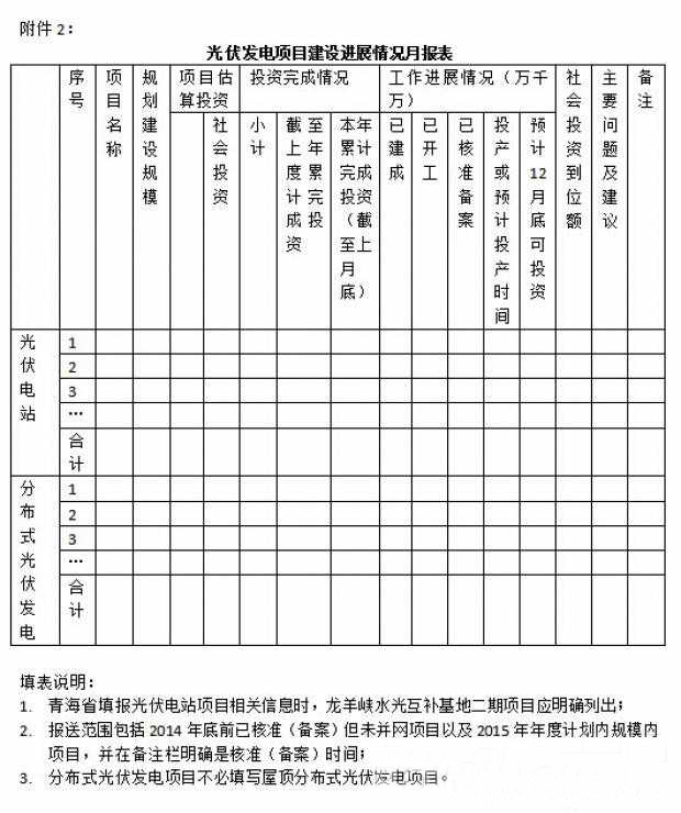光伏發(fā)電項(xiàng)目建設(shè)進(jìn)展情況月報表