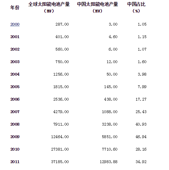 表1 近年來我國光伏電池產(chǎn)量增長態(tài)勢及與全球產(chǎn)量比較