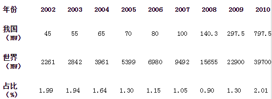 太陽能光伏發(fā)電裝機(jī)方面仍然以歐洲、日本和美國為主,相比之下我國光伏裝機(jī)容量占世界光伏裝機(jī)容量的比重非常小(見表3)。