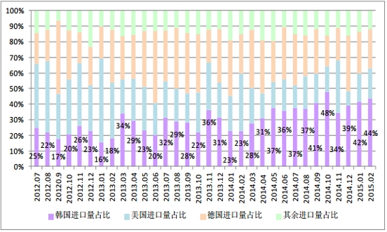 圖2 自韓國(guó)進(jìn)口量占比日漸增加