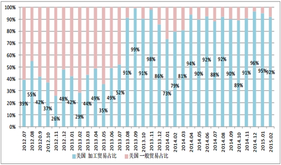 圖3 自美國(guó)按加工貿(mào)易進(jìn)口占比