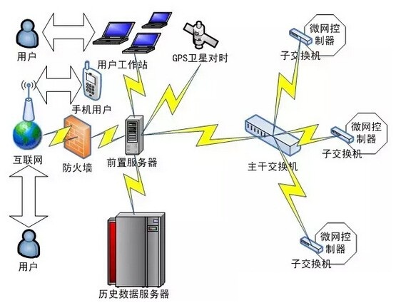 能量管理系統(tǒng)包括交換機(jī)、前置服務(wù)器、歷史數(shù)據(jù)服務(wù)器、用戶工作站、GPS衛(wèi)星對(duì)時(shí)裝置、液晶顯示器、不間斷電源、數(shù)據(jù)庫軟件、MEMS系統(tǒng)軟件等。