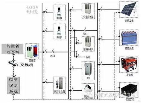 上海電氣輸配電集團(tuán)微電網(wǎng)示范系統(tǒng)是一個(gè)小型的微電網(wǎng)實(shí)驗(yàn)平臺(tái),在公司辦公樓配電系統(tǒng)基礎(chǔ)上構(gòu)建一個(gè)含光伏、儲(chǔ)能、柴油發(fā)電機(jī)、DVR、APF的微網(wǎng)系統(tǒng)。該平臺(tái)主要研究微網(wǎng)控制保護(hù)一體化和能量管理系統(tǒng)的應(yīng)用,研究微網(wǎng)組網(wǎng)技術(shù)、孤島控制技術(shù)和混合模型與在線仿真技術(shù)。