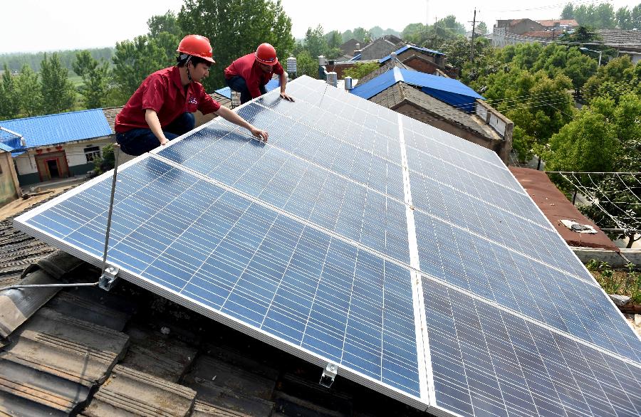 4月29日,在肥西縣山南鎮(zhèn)金牛社區(qū),工作人員在為一戶殘疾人家庭安裝光伏設備。為提高農村貧困殘疾人家庭收入,安徽省肥西縣投資60萬元,為山南鎮(zhèn)、高店鄉(xiāng)20戶貧困殘疾家庭免費安裝3kW小型戶用光伏電站。預計5月上旬,這20個小型戶用光伏電站將正式并網發(fā)電,除滿足自家用電需求外,多余電量將出售給國家電網。據(jù)悉,肥西縣旨在通過“光伏下鄉(xiāng)扶貧工程”,充分利用農村貧困殘疾人戶屋頂資源,建設家庭分布式光伏發(fā)電站,探索幫助他們脫貧解困的新路子。