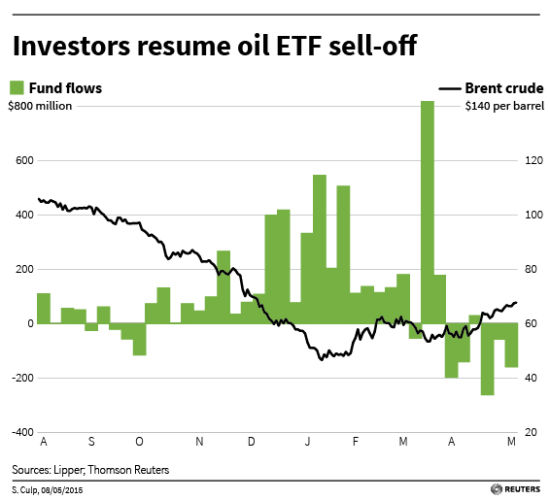 油市投資人正加速撤出相關上市交易基金(ETF),部分分析師認為在市場基本面欠佳的情況下,此舉是一種自保操作。
