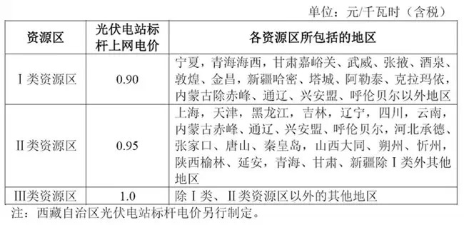 圖1:全國光伏電站標桿上網(wǎng)電價表