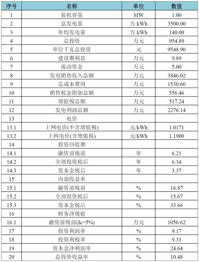 表1:Ⅲ類資源區(qū)地面光伏電站財務(wù)指標表