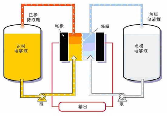 但是,其他的儲(chǔ)能技術(shù)也在不斷研發(fā)進(jìn)步,液流電池就是其中的一種。“液流”是啥樣子?其實(shí)就是兩罐液體,內(nèi)有電解質(zhì),以抽送至電池室,電池室內(nèi)有一薄膜,2種電解質(zhì)隔著薄膜反應(yīng),產(chǎn)生電力,充電時(shí),則逆向反應(yīng)。