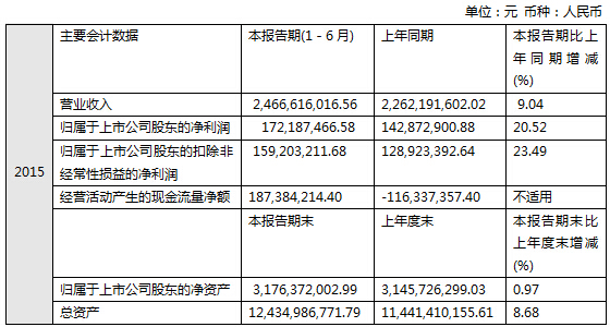 對2013-2015這3年上半年的營業(yè)收入、歸屬于上市公司股東的凈利潤、總資產加以對比,如下表(注:對比表中均為半年數據)。