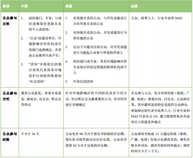 中國、美國、法國環(huán)境影響評(píng)價(jià)公眾參與對(duì)比