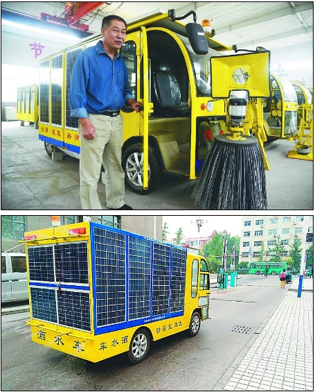 如今在承德縣縣城的大小街道上,太陽(yáng)能清掃車、灑水車成了當(dāng)?shù)匾坏漓n麗風(fēng)景線。這些零排放、節(jié)能環(huán)保的環(huán)衛(wèi)車輛,均出自該縣環(huán)衛(wèi)管理所所長(zhǎng)王曉東的奇思妙想,通過(guò)他的發(fā)明創(chuàng)造,在過(guò)去4年時(shí)間里,承德縣縣城道路機(jī)械化清掃率從0增加到了63%,每年節(jié)約燃油費(fèi)用20多萬(wàn)元。