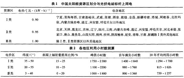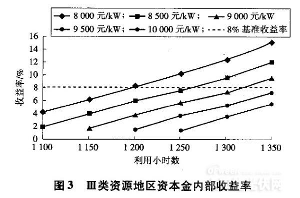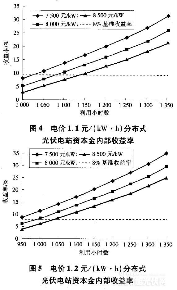 隨著能源需求的不斷增加和環(huán)境氣候問題的日趨嚴(yán)重,加大發(fā)展可再生能源、提升可再生能源在能源供應(yīng)中的比例,已成為可持續(xù)能源戰(zhàn)略的重要舉措,并可為電網(wǎng)的低碳運(yùn)行做出貢獻(xiàn)。我國太陽能光伏資源豐富,且智能電網(wǎng)的蓬勃發(fā)展為光伏發(fā)電創(chuàng)造了前所未有的機(jī)遇。本文分大型光伏電站與分布式光伏電站兩方面分析不同地區(qū)、不同造價(jià)下資本金內(nèi)部財(cái)務(wù)收益率,從而得出對(duì)光伏最小利用小時(shí)數(shù)的要求。