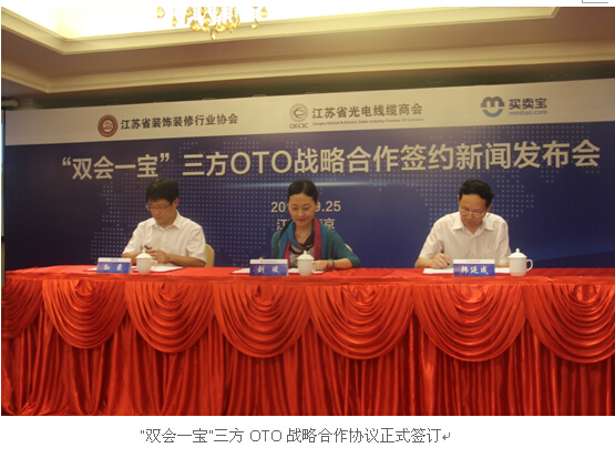 2015年9月25日,由電工電氣電子商務交易平臺買賣寶與江蘇省光電線纜商會、江蘇省裝飾裝修行業(yè)協(xié)會共同舉辦的“雙會一寶”三方OTO戰(zhàn)略合作簽約新聞發(fā)布會在江蘇南京隆重召開。